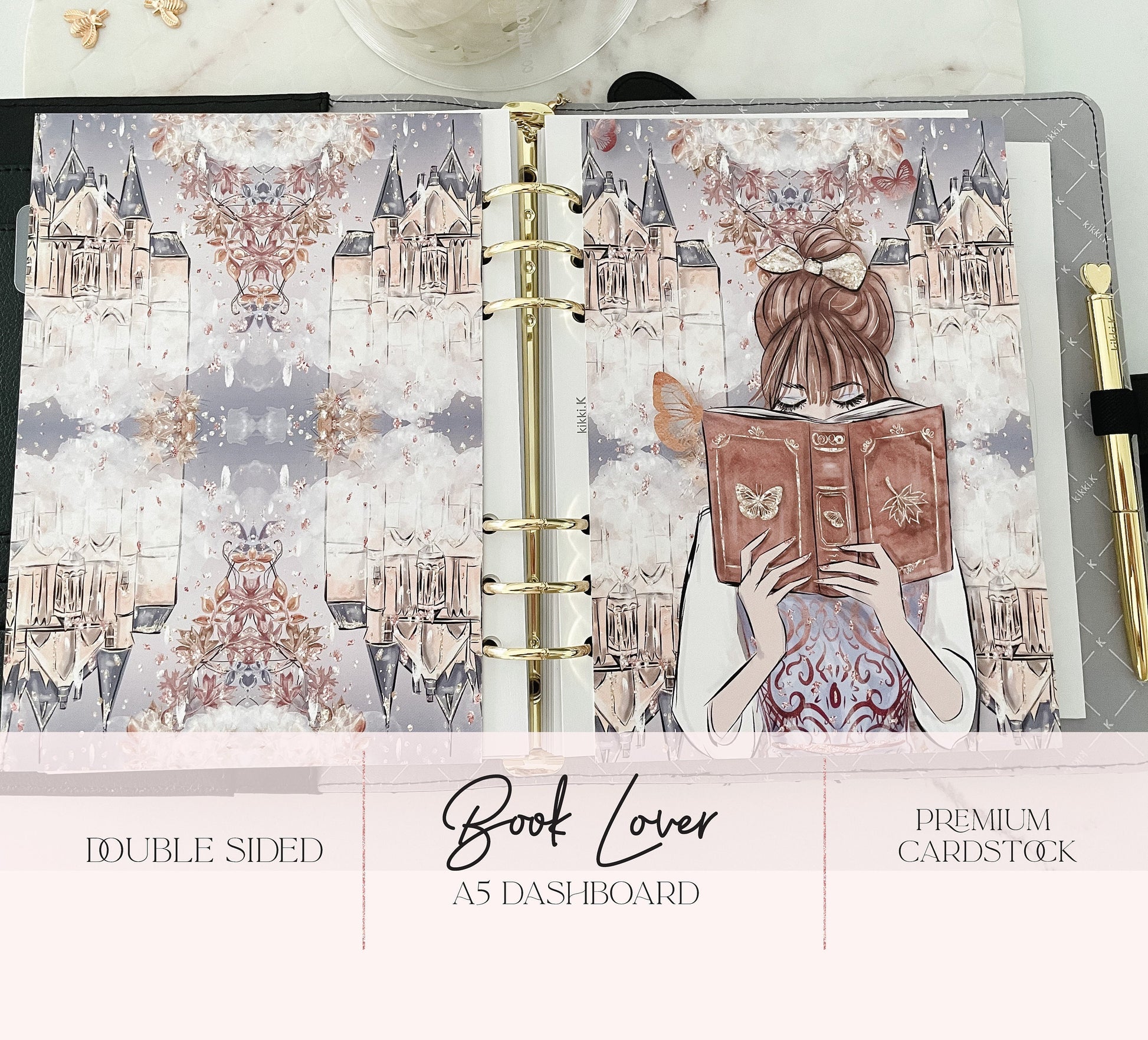 Book lover Dashboard A5 Planner Dashboard Insert Set Journaling Card Punched HP or 6 Hole Double Sided