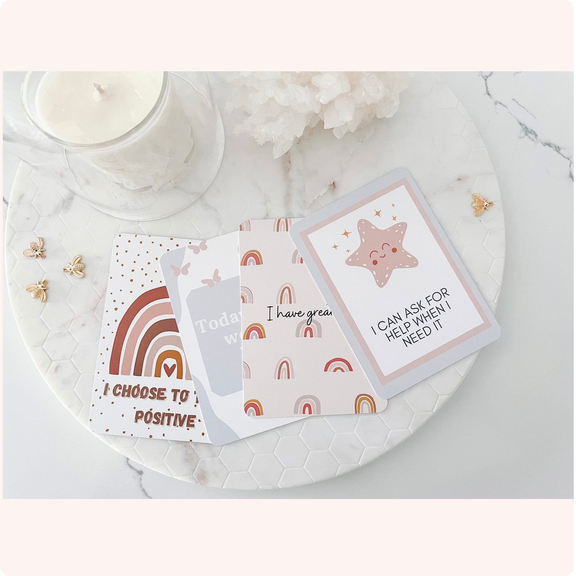 * 20 A6 size Affirmations on beautiful designed Card stock with curved edges.