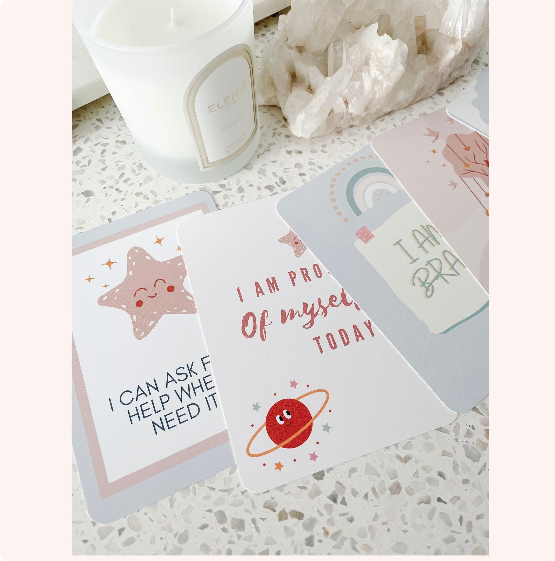 Positive Affirmation Cards For Kids, Mindful Meditation For Children, Teacher Aid, Set of 20 Card Print Gift With Pouch, Anxiety Tool