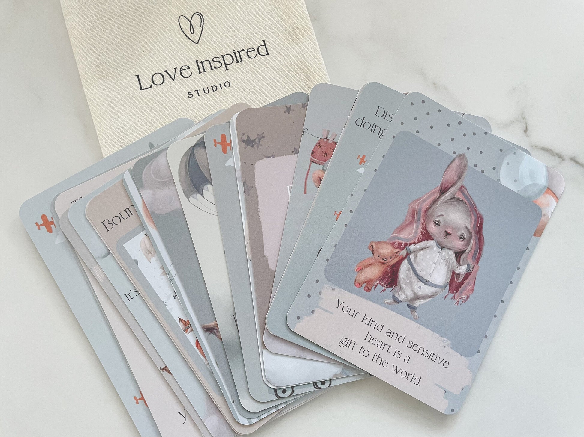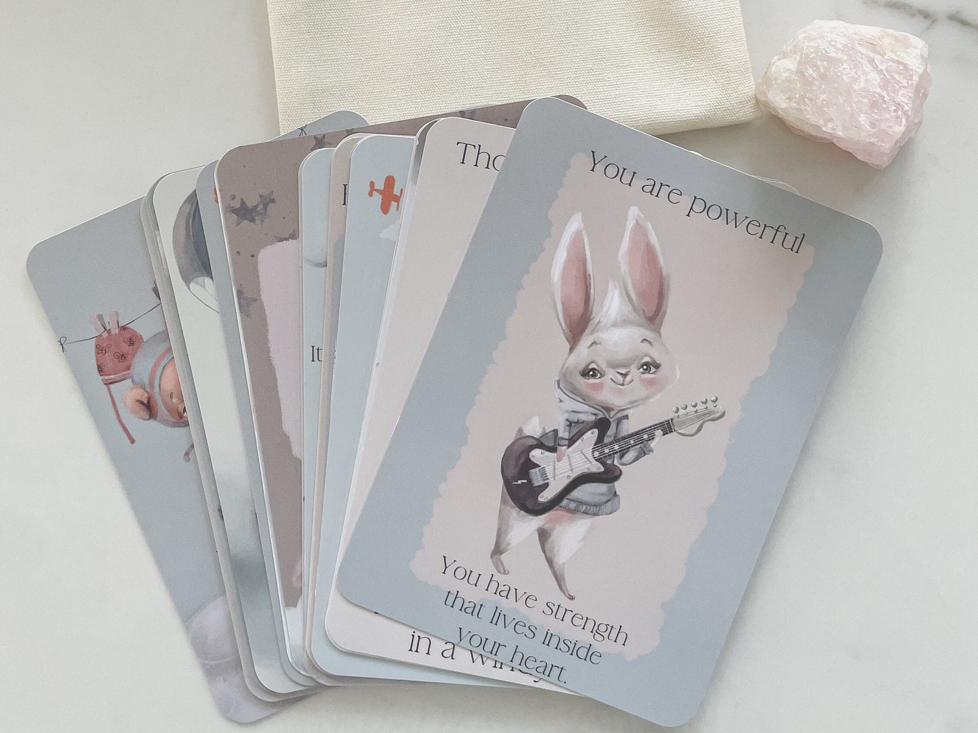 Positive Affirmation Cards For Kids, Mindful Meditation For Children, Teacher Aid, Set of 20 Card Print Gift With Pouch, Anxiety Tool